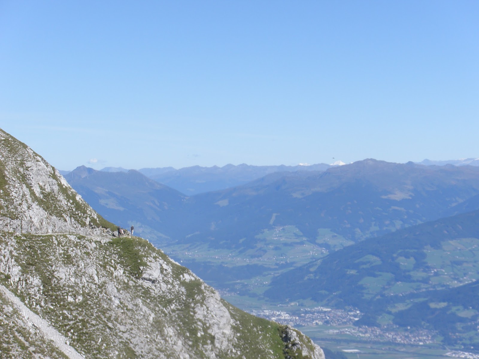 The Klettersteig between Langer Sattel and the top of the cable car at the Hafelekarhaus looked a little intimidating without klettersteig equipment so the easier option was to lose 300m in height, traverse across and then go back up. It all adds up in the fitness training regime!