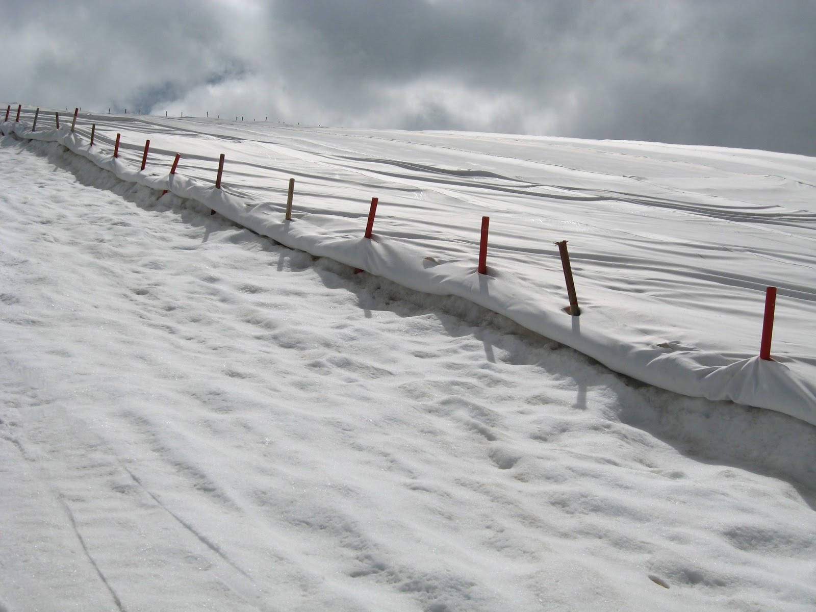 There were several areas where fleece had been laid to protect the snow. Here you can see what a good job it does at holding the snow.